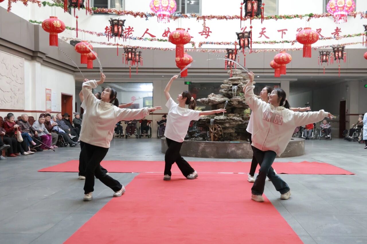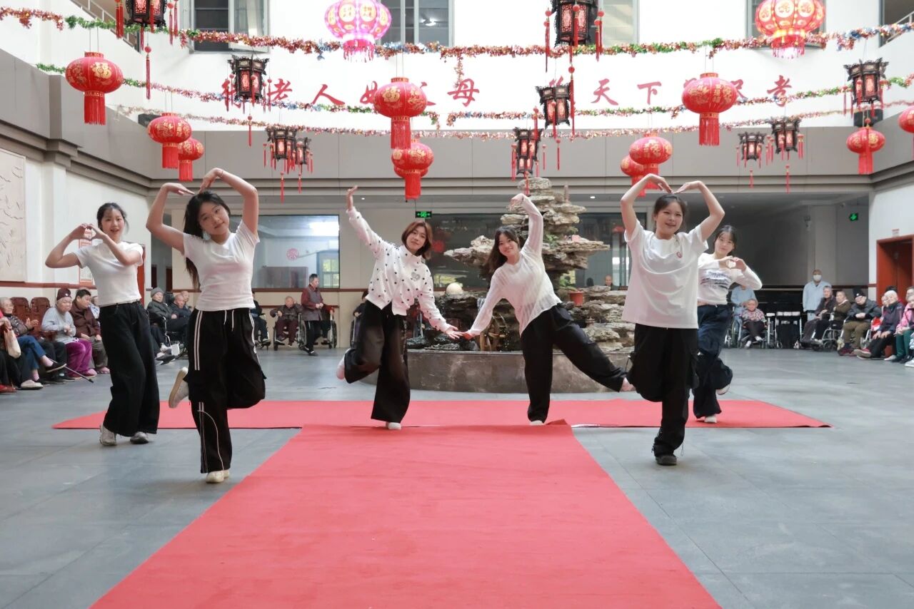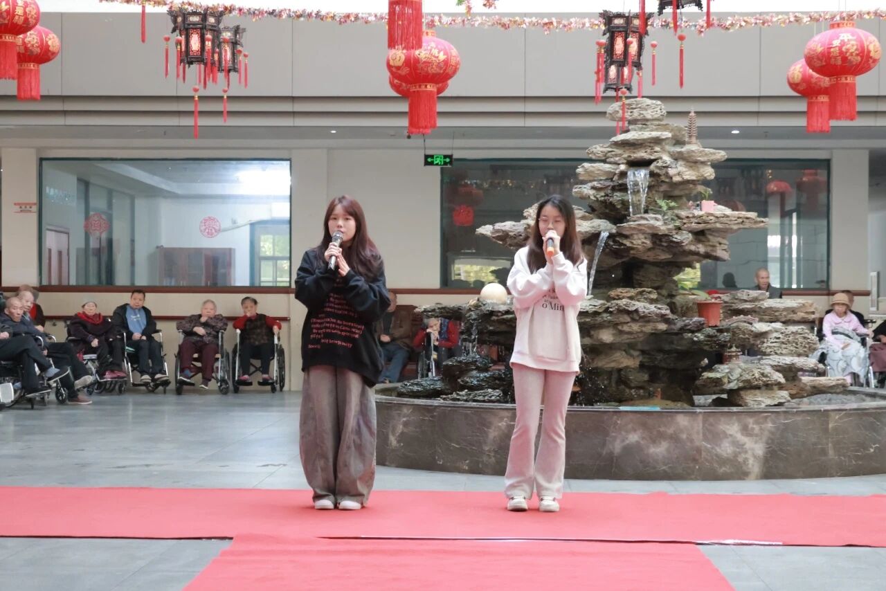 随后,温馨的舞蹈如暖流般抚慰人心,经典的老歌旋律一响起,将老人们的思绪带回了青春岁月。在志愿者的鼓励下,老人们情不自禁地轻声跟唱,现场歌声与笑声交融,洋溢着感人至深的温馨气氛。