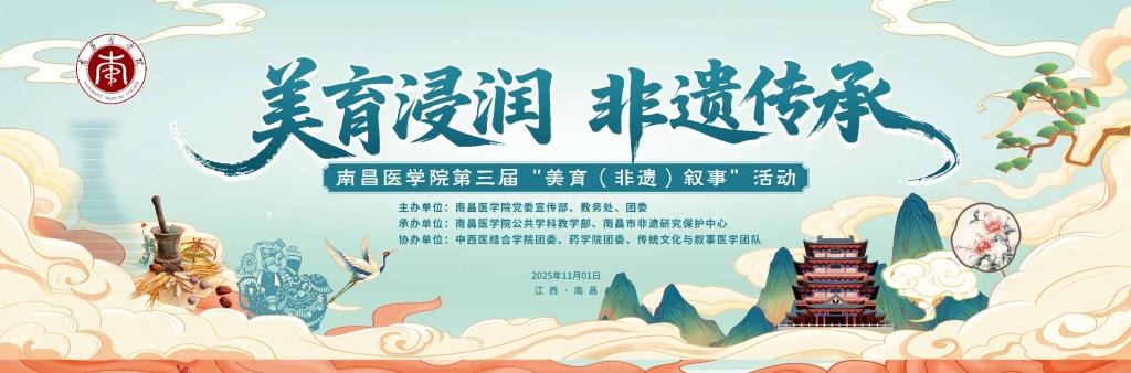 非物质文化遗产是流淌在民族血脉中的文化瑰宝,承载着厚重的历史记忆与独特内涵。为弘扬中华优秀传统文化,落实立德树人根本任务,坚定文化自信,南昌医学院第三届美育(非遗)叙事活动即将暖心启幕!