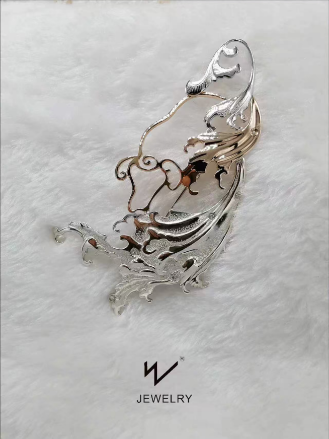 豫章首饰錾镶技艺区别于传统的、单纯的錾刻和镶嵌技艺,即用錾子錾出流畅且精美的纹样或用锼弓锼出图案,再镶嵌以宝石点缀,使得首饰备显高雅别致、雍容华贵。南昌汉代海昏侯墓出土的文物中“嵌宝石青铜带钩”、“鎏金镶玉石龟形青铜器镇”、“鎏金凤鸟纹青铜当户”以及动物塑像青铜玩具等出土文物,都体现了錾镶这门古老技法深厚的文化底蕴。