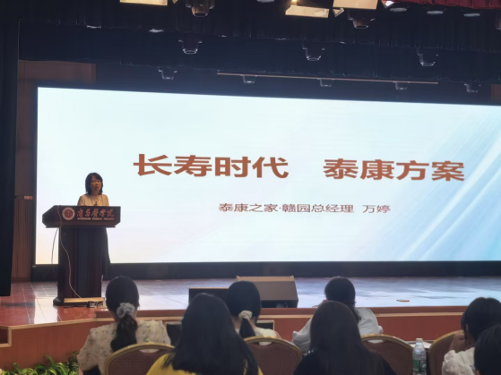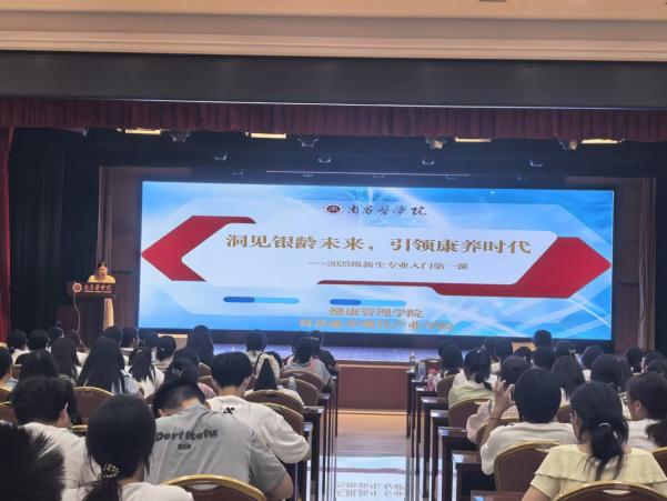 为使新生深刻理解专业价值、前瞻行业未来,2025年9月16日,健康管理学院为2025级养老服务管理、医养照护与管理专业的新生隆重举办了题为“洞见银龄未来,引领康养时代”的专业启蒙讲座。本次活动特邀行业领军企业——泰康之家·赣园万婷总经理担任主讲嘉宾,为同学们带来了一场前沿、深刻的行业洗礼。
