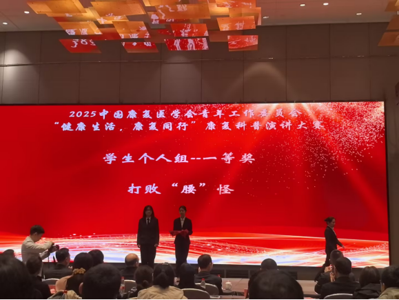 作为全国康复科普领域的高水平赛事,本次大赛吸引了来自全国多所高校的优秀选手同台竞技。在胡龙老师的全程指导下,黄鑫悦同学以《打败“腰”怪》为题,聚焦常见腰部健康问题,将康复专业知识转化为通俗易懂的科普内容,兼具科学性、趣味性与表现力。其生动流畅的表达与沉稳大气的台风,赢得了评委的一致好评,充分展现了我院学子扎实的专业功底与昂扬的精神风貌。
