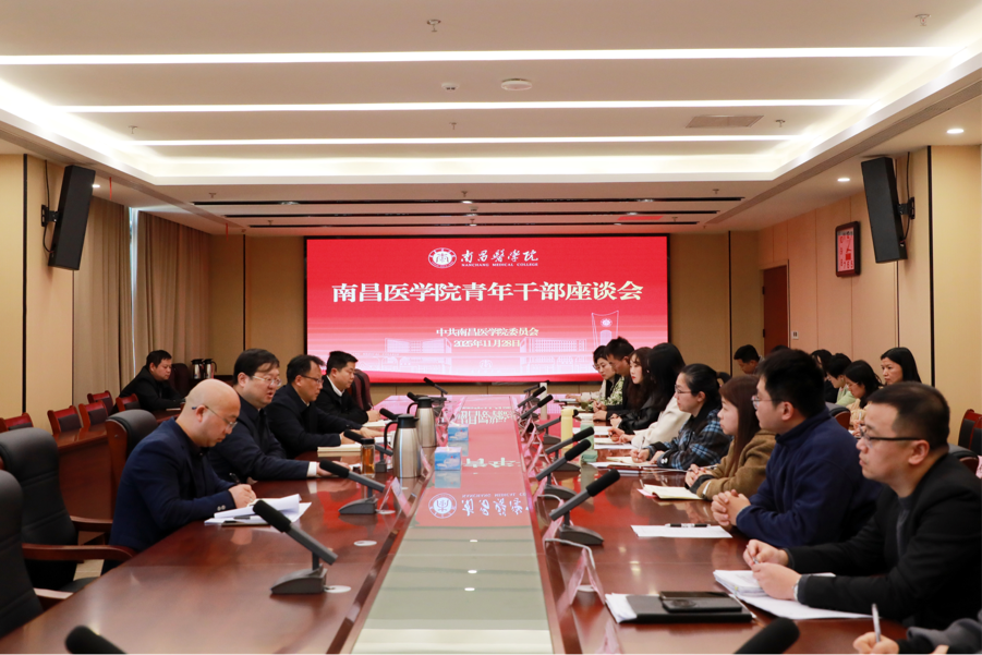 11月28日下午,南昌医学院青年干部座谈会在九龙湖校区举行。校党委书记殷剑与青年干部代表座谈交流,党委委员、纪委书记叶德胜主持会议。殷剑指出,青年干部是学校事业发展的希望,是推动学校高质量发展的中坚力量。学校党委始终高度重视对青年干部的培养,关心爱护青年干部成长,坚持正确的选人用人导向,持续优化职称评聘和干部选拔机制,为敢为、善为、有为者鼓劲,为想事、干事、成事者搭台,进一步提振干事创业的精气神,....
