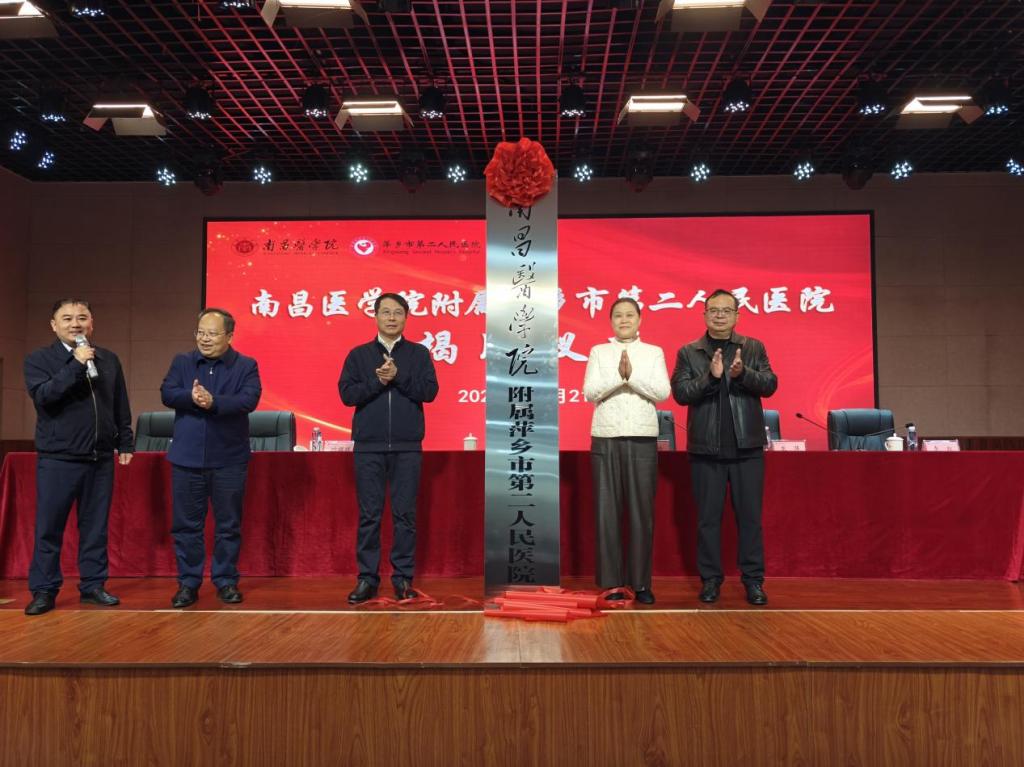 11月21日,南昌医学院附属萍乡市第二人民医院揭牌仪式举行。南昌医学院党委副书记、校长李秋根,萍乡市人民政府党组成员、副市长朱艳珍,南昌医学院党委委员、副校长叶耀辉,萍乡市第二人民医院党委书记李红,萍乡市第二人民医院党委副书记、院长游胜出席仪式。萍乡市委卫健工委书记、市卫健委主任黄云章主持仪式。李秋根在讲话中指出,南昌医学院附属萍乡市第二人民医院正式揭牌,是深化医教融合、助力卫生健康事业高质量发展....