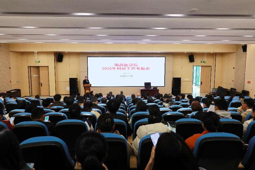 3月31日下午,南昌医学院在九龙湖校区图书馆学术报告厅召开了2026年科研工作专题会,围绕全面加强“有组织科研”进行系统部署。校党委副书记彭维杰,党委委员、副校长杨锋出席会议并讲话。学校相关职能部门负责人、各二级学院管理干部、教师代表等参加会议。会上,彭维杰深刻阐述了推进“有组织科研”对学校高质量发展的战略意义,并代表学校党委对2026年科研重点工作进行了全面部署。他指出,科研工作决定了学校与学科的发展高...