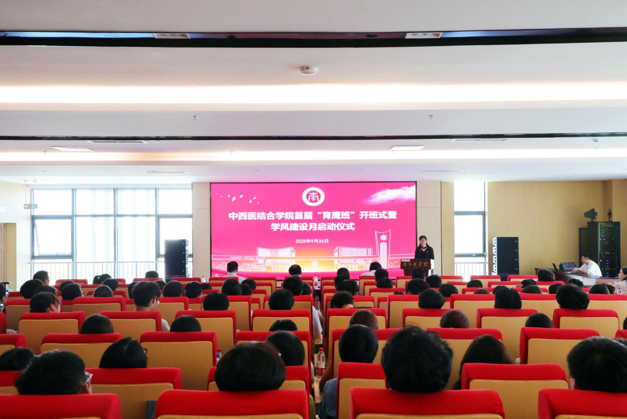 殷剑对“育鹰班”开班表示祝贺,并肯定了中西医结合学院在医学拔尖创新人才培养上所做出的努力。他指出,“育鹰班”的建设是推动教育链、人才链与产业链、创新链有机衔接的生动实践,更是学校推动学科交叉融合、深化医教研协同的重要举措。学院要持续优化学科结构、推动产教融合,高质量构建以学生成长成才为核心的体制机制,为特色专业建设提供坚实支撑。