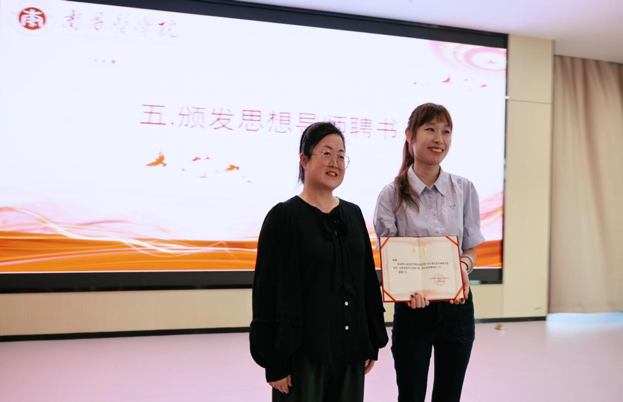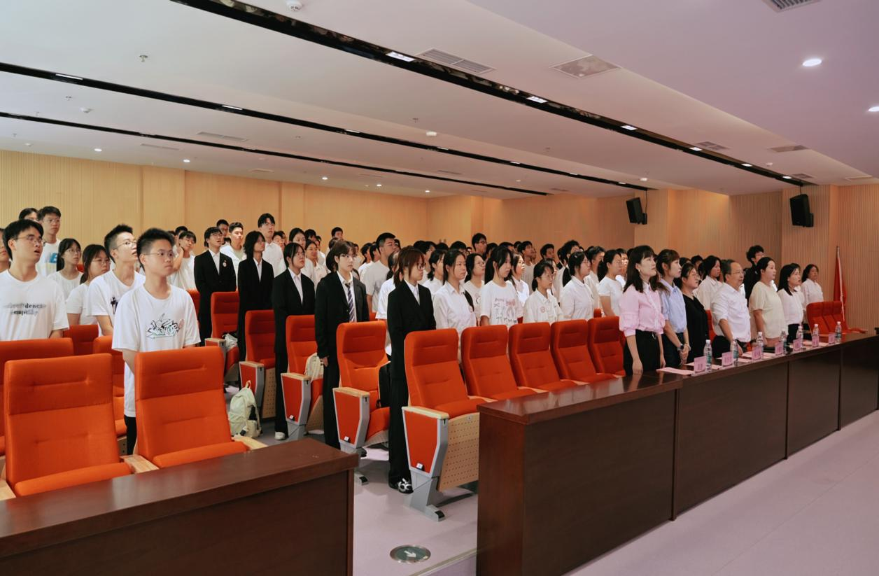 在聘任环节,临床医学院党委副书记南今娘为2025级红医卓越班初级班的思想导师耿妍君颁发聘书。2024级红医卓越班(中级班)班委为2025级初级班学员佩戴班徽,开启入班“第一课”,强化集体认同与使命担当。仪式最后,2024级红医卓越班班长向2025级初级班代表授予班旗,完成旗帜交接。