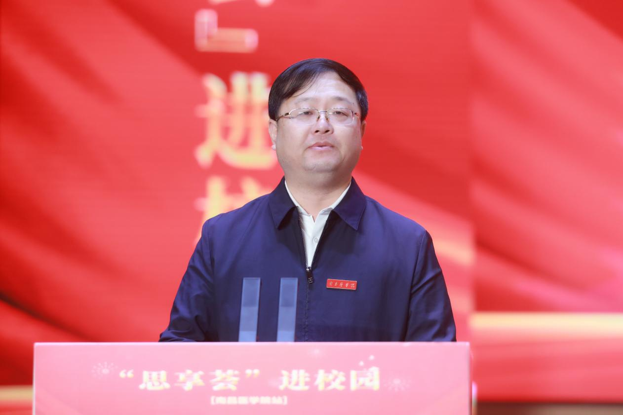 殷剑在致辞中表示,“思享荟”进校园活动既是深入贯彻落实党的二十届四中全会精神的创新探索,也为全省广大师生思想交流与智慧碰撞搭建了广阔舞台,更为我省思政课教学改革注入了新动能。南昌医学院始终牢记“为党育人、为国育才”的初心使命,坚持把思政工作作为学校工作的生命线,在机制建设、课堂教学、资源整合、实践育人、师资队伍等方面深化改革,初步构建形成了“168”思政育人体系,努力构建处处、时时、人人的“大思政”格局。希望以本次活动为契机,共同把“思享荟”进校园活动建设成为我省思政课建设的“崭新名片”,努力办好人民满意的高等教育,为全面推进教育强省建设贡献南医的智慧与力量。