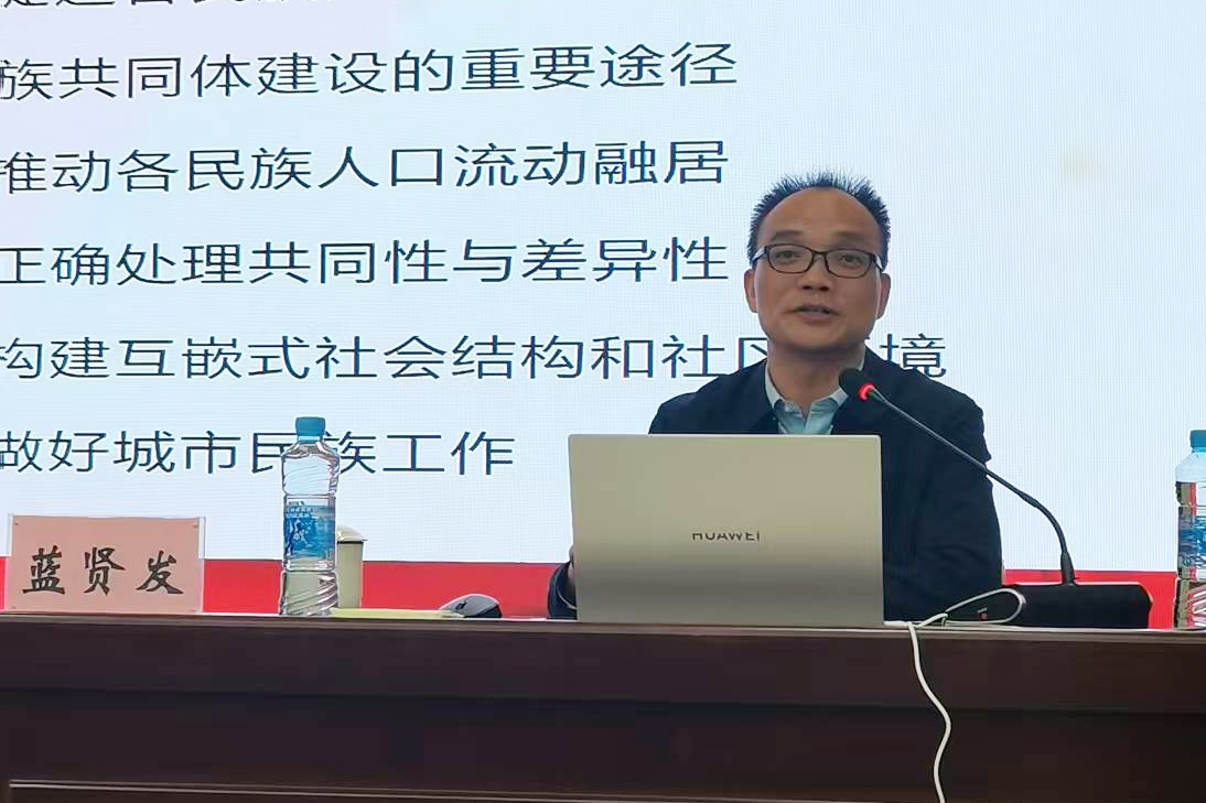 培训期间,南昌大学原党委常委、统战部部长、江西省高校铸牢中华民族共同体意识研究中心主任、研究员滕勇前作了题为《不断铸牢中华民族共同体意识 坚决抵御和防范宗教向校园渗透》的专题报告,马克思主义学院蓝贤发博士围绕《铸牢中华民族共同体意识 推进学校民族工作高质量发展》作了深入讲解。两位专家结合理论阐释与实践经验,为参训人员提供了具有指导性和操作性的工作参考。