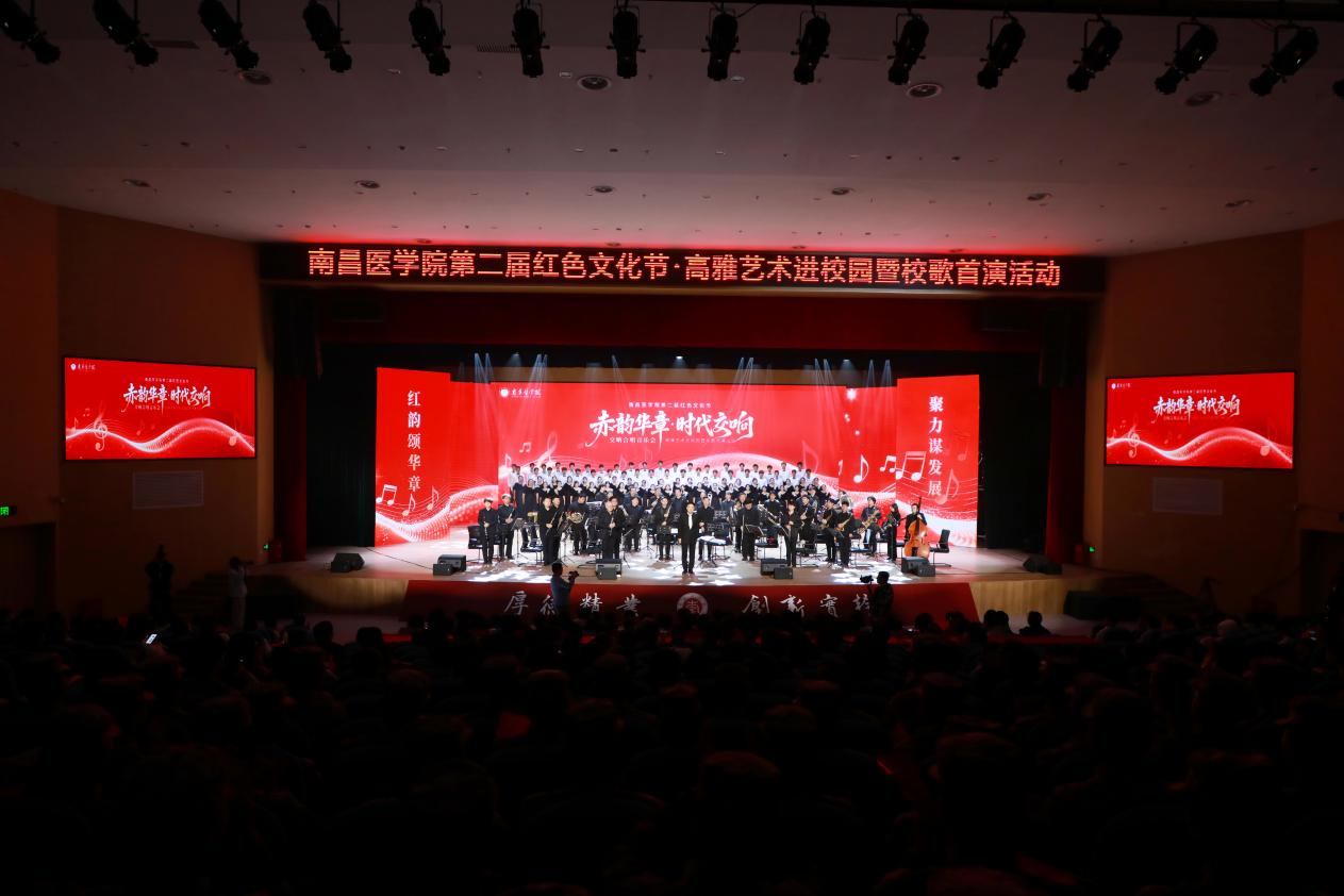 11月24日晚,南昌医学院第二届红色文化节首场演出——“高雅艺术进校园暨校歌首演活动”在九龙湖校区举行。活动邀请江西青年爱乐管乐团倾情演奏,南昌医学院校歌惊艳首演。南昌医学院党委书记殷剑,党委副书记、校长李秋根,赣南医科大学党委副书记黄瑞忠,南昌医学院党委副书记彭维杰,党委委员、副校长叶耀辉,党委委员、纪委书记叶德胜出席活动。赣南医科大学及南昌医学院1000余名师生代表现场观看了演出。