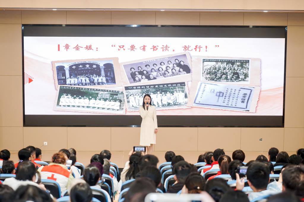 在故事分享环节,南医志愿者张芷薰、黄钰晴以《志愿点亮初心,青春书写担当》为题,讲述了参与急救培训、社区义诊等志愿服务的故事,展现了医学生的责任与朝气。随后,南昌县残疾志愿者沈继奋、第39届“南丁格尔奖章”获得者章金媛的事迹分享,进一步凝聚了“志愿无界、大爱无疆”的精神力量。活动在全体合唱《光的力量》中推向高潮。