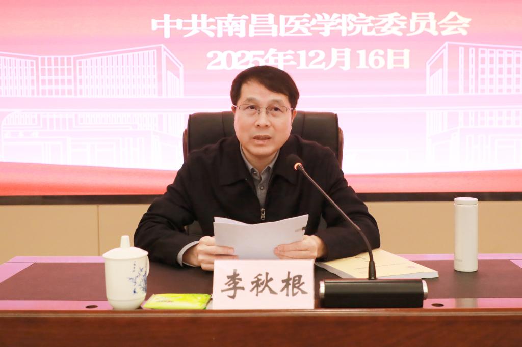李秋根要求,要坚持旗帜鲜明讲政治,持续强化理论武装,筑牢思想根基,不断增强党组织战斗堡垒作用和党员先锋模范作用,推动党建工作与业务工作深度融合;要围绕中心工作强担当,持续深化学科专业、培养模式、课程建设、师资队伍、实践育人等重点领域改革,不断提升人才培养质量与办学水平,全力打造南医特色育人品牌;要推进自我革命抓整改,以巡视整改为契机,坚决扛起管党治党责任,坚持问题导向,紧盯薄弱环节,持续正风肃纪,推动全面从严治党向基层延伸、向纵深发展,为学校事业高质量发展提供坚强保障。