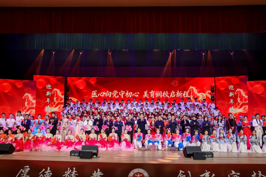本次新年晚会不仅是一场视听盛宴,更是一堂沉浸式的思政大课和美育实践课,彰显了学校“美育+思政+实践”浸润式育人模式的阶段性成果与育人实效。演出通过美育与思政的深度融合,将爱国情怀、时代责任与青春梦想融于艺术表达,让师生在艺术熏陶中感悟信仰力量、赓续精神血脉,进一步激发广大青年学子投身健康中国建设的壮志豪情,以昂扬姿态迈向新的一年。