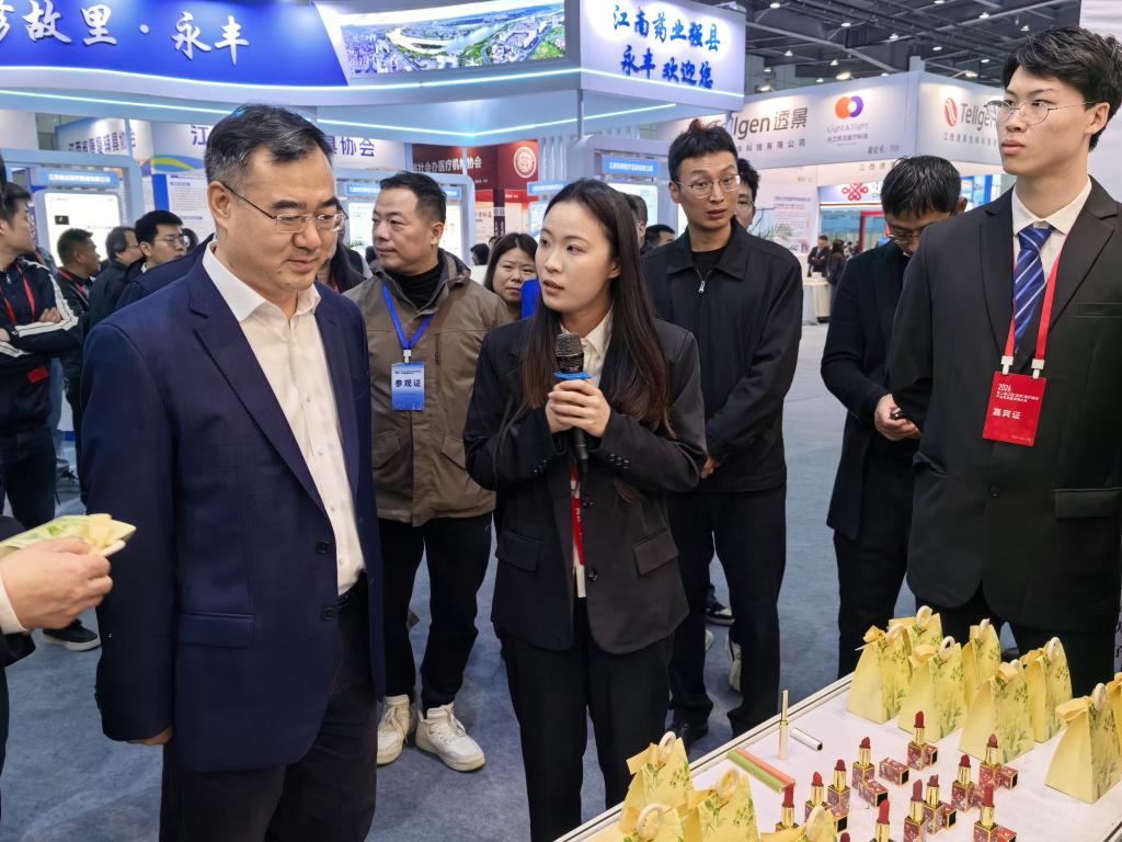 4月3日至5日,2026第二届江西(进贤)医疗器械产业高质量发展大会在进贤县国际会展交易中心举行。南昌医学院党委委员、副校长叶耀辉带队参会。我校药学院研制的“中药+”口红、检验医学院师生团队研制的自研金标试剂盒等系列特色成果现场参展,吸引了不少参展商代表和游客参观体验。