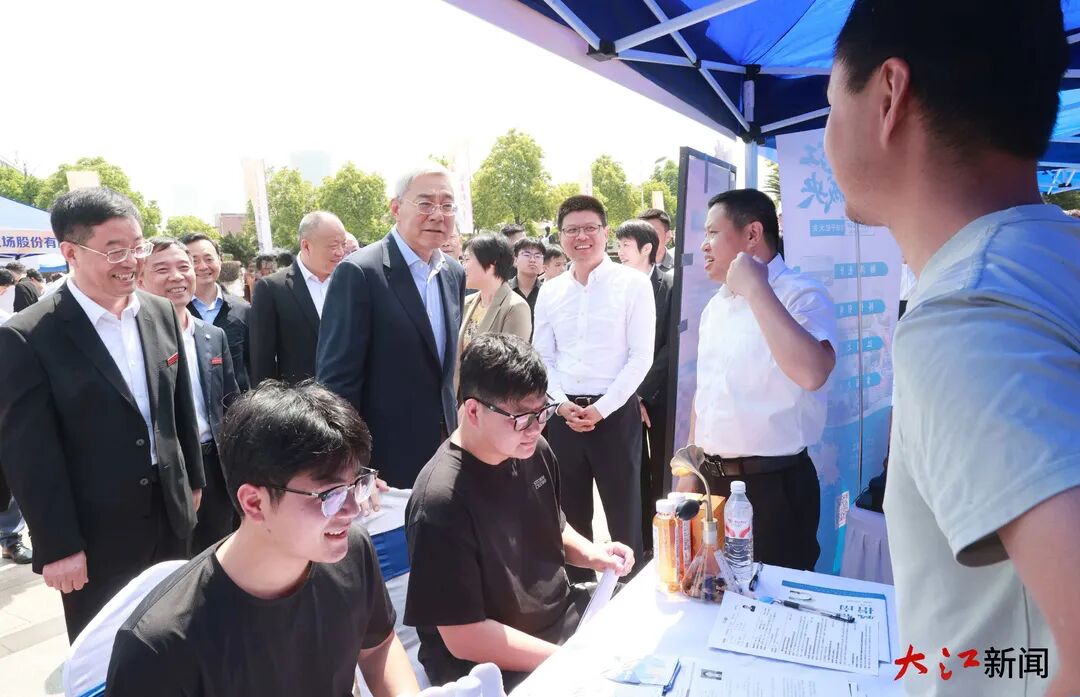 南昌航空大学有着特色鲜明的学科优势。在创新创业学院,尹弘观摩学生创新创业成果,察看大学生创业工作室。他说,学生是创新创业的生力军。要立足学生创业需求,研究细化支持政策,为创新创业营造良好环境。火箭广场上,航空相关产业专场招聘会吸引了我省不少知名企业和广东省江门市组团参加。尹弘鼓励毕业生以从容自信的心态应聘,充分展示自己所长,收获称心如意的工作。希望用人单位聚焦毕业生的关心关切,用美好前景、优质岗位吸引更多人才。