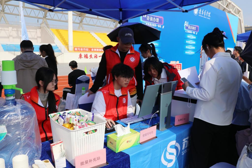 招聘现场,AI智慧就业赋能区成为全场亮点,为求职学子提供一对一AI简历诊断优化、AI模拟面试、职业生涯规划等智能化就业服务,为高校毕业生打造一站式求职服务平台,极大地提升了学生求职的效率。此外,现场还设立了“政策咨询区”“应聘面试区”“学院服务区”等多功能分区,组织专业教师、就业导师、学院辅导员全程跟进、现场答疑,并针对重点群体毕业生开展“一对一”就业帮扶,确保每一位有就业意愿的学生都能得到及时有效的支持和帮助。