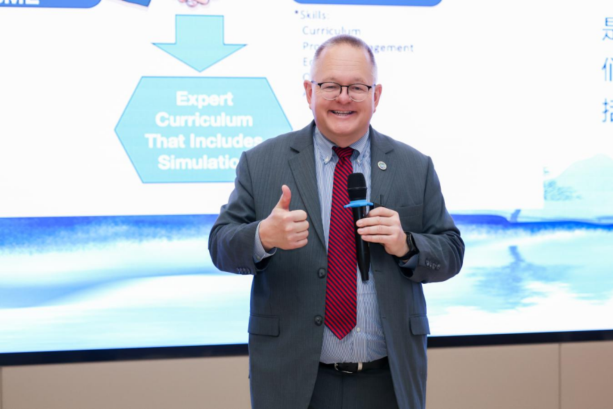 主旨报告环节,保罗・弗兰普斯教授围绕模拟医学中心建设、运营及师资发展,系统分享国际一流模拟中心建设理念、管理模式与师资培养体系;约翰・奥唐奈教授聚焦急诊技能培训与急诊模拟混合式学习,详解前沿教学方法、复盘工具与课程设计,为临床技能教学提供可落地的实践路径。两位专家的分享兼具理论高度与实践深度,参会人员认真聆听、积极互动,现场学术交流氛围热烈。
