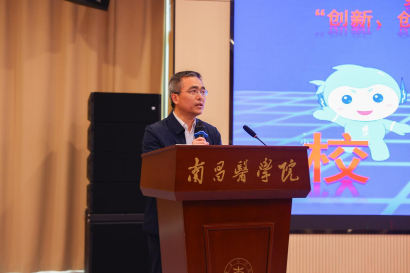 杨锋在致辞中表示,广大南医学子是学校创新创造的主力军,是学校未来发展的希望所在。他寄语全体参赛同学,既要仰望星空、勇于创新,更要脚踏实地、面向基层。希望同学们以本次大赛为契机,将创新创业的触角延伸至江西的田间地头、社区乡村,把专业知识转化为服务基层群众的实际能力,把创意项目扎根在赣鄱大地的沃土之中。