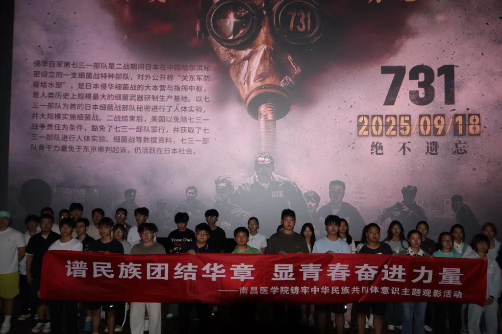 为深入贯彻落实上级关于开展2025年铸牢中华民族共同体意识教育宣传展示月活动的部署,扎实推进“五个一”系列活动,9月20日至21日,学校党委统战部、团委联合组织学生观看爱国主义题材电影《731》。