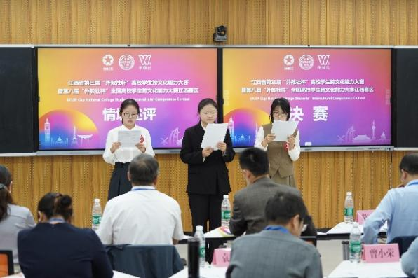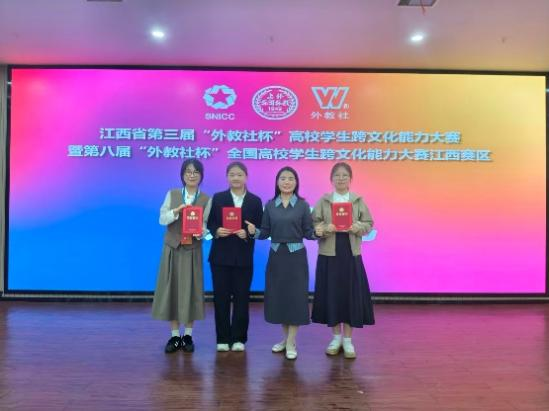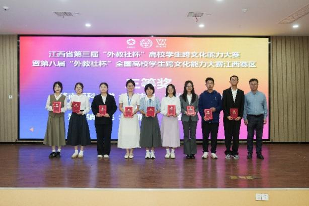 10月19日,江西省第三届“外教社杯”高校学生跨文化能力大赛暨第八届“外教社杯”全国高校学生跨文化能力大赛江西赛区决赛圆满落幕。由公共学科教学部教师宋梅指导,24级临床医学专业学生殷绍榕、23级临床医学专业学生李思睿、刘冰玉组成的参赛团队经过激烈角逐荣获决赛三等奖。