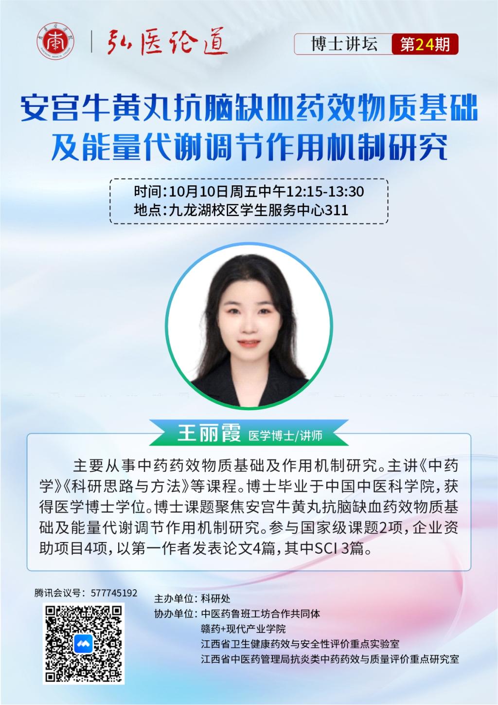 弘医论道之博士讲坛第24期:安宫牛黄丸抗脑缺血药效物质基础及能量代谢调节作用机制研究