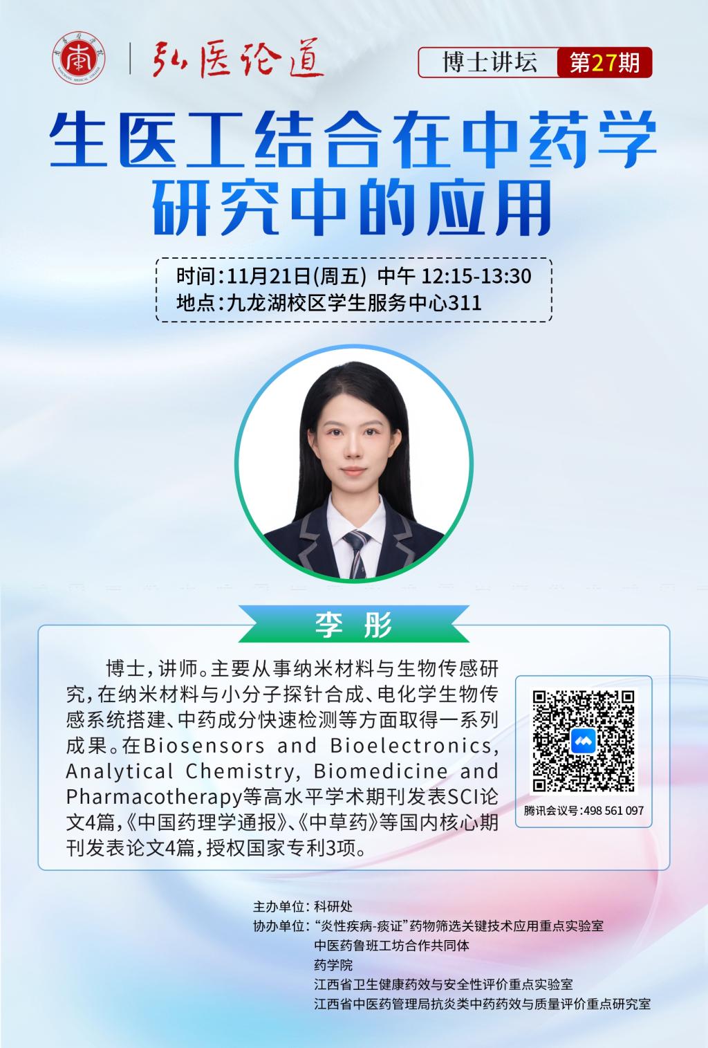 弘医论道之博士讲坛第27期:生医工结合在中药学研究中的应用