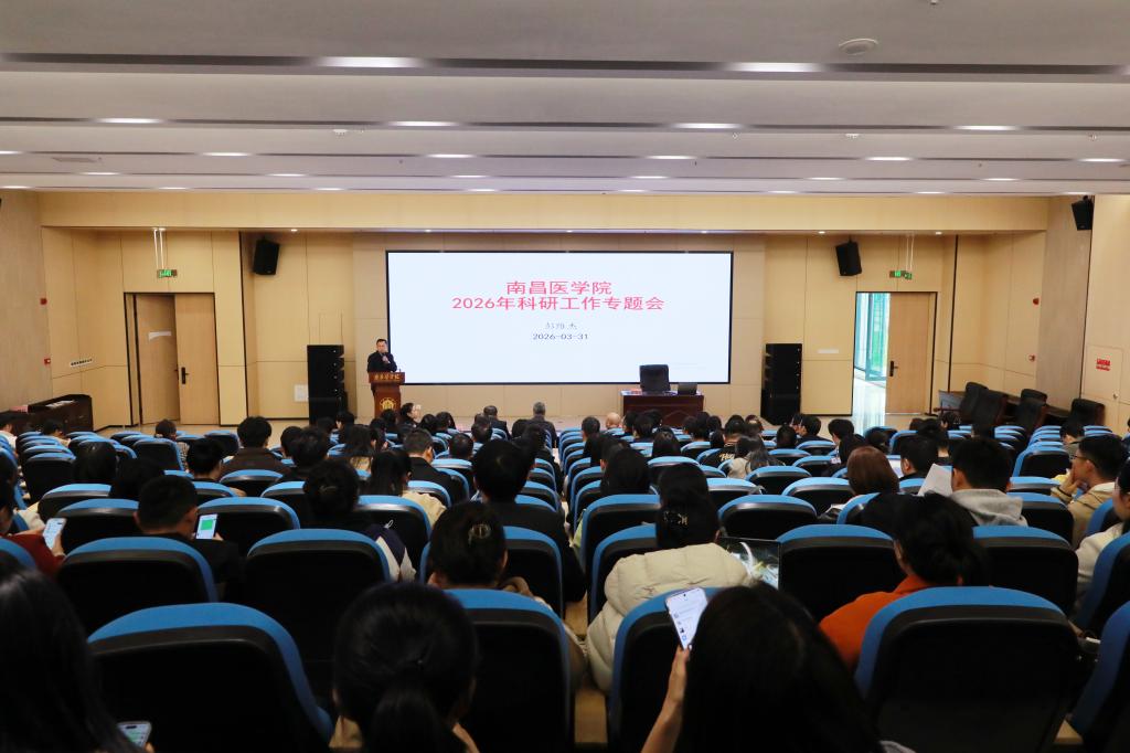 3月31日下午,南昌医学院在九龙湖校区图书馆学术报告厅召开了2026年科研工作专题会,围绕全面加强“有组织科研”进行系统部署。校党委副书记彭维杰,党委委员、副校长杨锋出席会议并讲话。学校相关职能部门负责人、各二级学院管理干部、教师代表等参加会议。