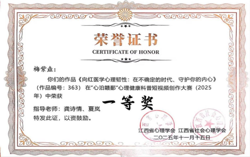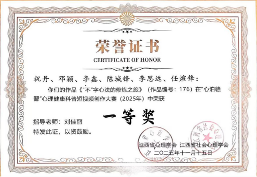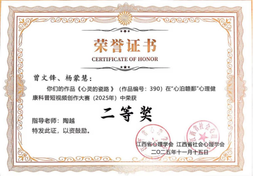 近日,由江西省心理学会、江西省社会心理学会主办的2025年“心泊赣鄱”心理健康科普短视频大赛获奖结果正式公布。我校学子在此次大赛中表现突出,共斩获一等奖2项、二等奖1项,成绩喜人。