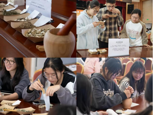 活动伊始,参与者通过抽签分组并开展“击鼓传包”破冰游戏,在轻松活泼的节奏中迅速拉近彼此距离。随后进入“药香手作”环节,同学们在指导下协作完成称药、研磨、装囊等步骤,亲手制作出具有安神、驱蚊等功效的香囊。手作过程不仅让大家体验到传统药香文化的魅力,更在专注与协作中舒缓了日常压力。
