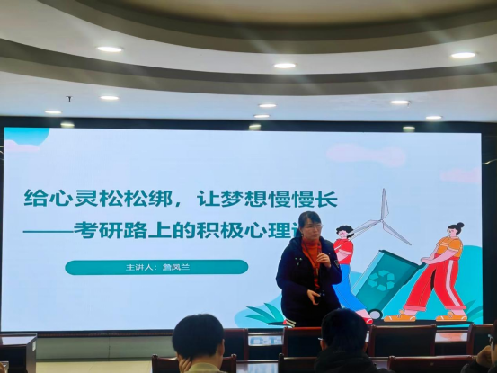 讲座伊始,詹凤兰老师结合其超万小时心理咨询的丰富经验,从医学生的专业特点出发,深入剖析了考研压力的多重来源。她引导同学们辩证看待压力,指出适度压力是激发潜能的“助推器”,而过度压力则会严重影响身心健康与备考状态。