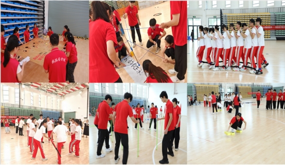 活动伊始,九支学院代表队以充满创意与激情的团队风采展示,点燃了全场气氛。随后的心理素质拓展竞赛将红色教育理念付诸实践。各小队在六个模拟长征艰难险阻的拓展项目中协同完成“救援任务”。在“重走长征路”环节,队员们通过倾斜地图,共同引导象征医疗物资的小球沿路线前行,每一次成功都引发热烈掌声;“血墨诀别书”项目中,队员们合力操控绳尾,以中央毛笔在宣纸上留下坚定有力的字迹;“铁血渡险河”挑战则要求队员们借助三块砖头稳健前行,模拟当年渡河的艰险。整场活动通过沉浸式体验与紧密协作,使学生在实践中深刻感悟革命精神,增强了团队凝聚力与个人心理韧性。