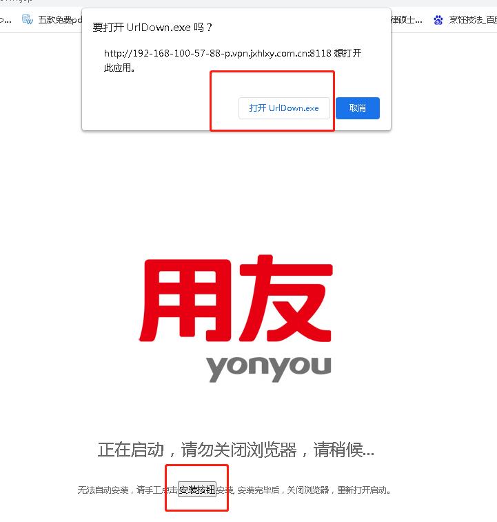 C)点击 打开UrlDown.exe 会自动进入财务系统 输入账号密码登录即可 如没有反应 点击下方主动安装,主动安装会下载setup.exe的软件,安装运行它,然后重启网页即可