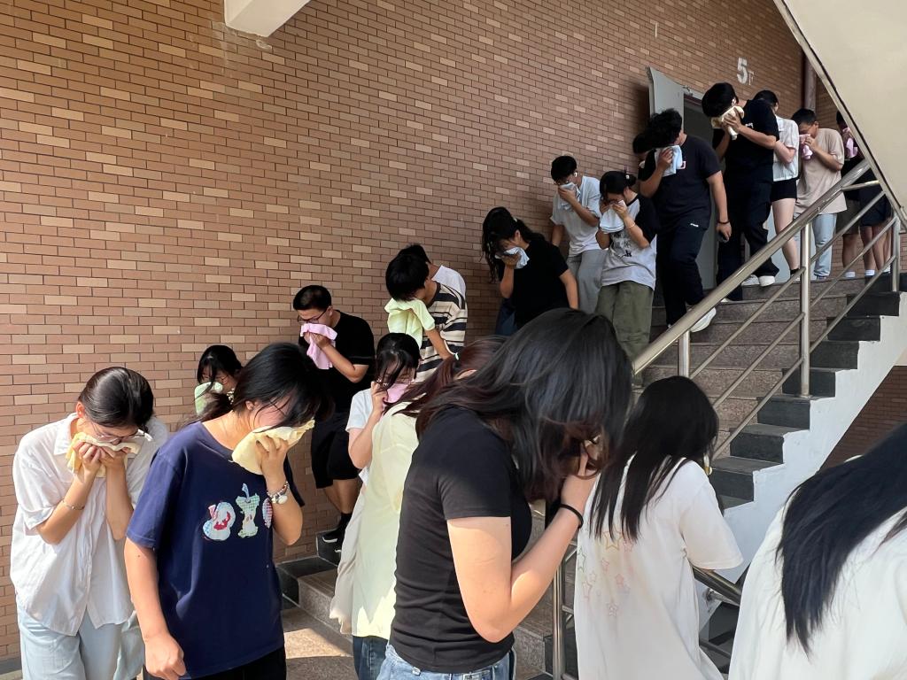 随着警报声响起,全体师生迅速进入紧急状态。在引导老师的指挥下,同学们用湿毛巾捂住口鼻,弯腰低姿,按照预定疏散路线快速、有序撤离。整个过程中,师生行动迅速、配合默契,未出现拥挤、推搡等情况,充分展现了良好的安全素养和纪律意识。