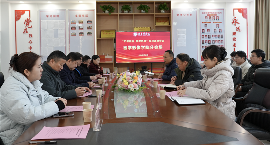 跟据学校“产教融合·医教协同”实习基地会议的总体安排,1月21日下午医学影像学院分会场会议在象湖校区召开,学院院长熊慧、党总支副书记朱福良及全体教职工参会,会议由学院副院长王向东主持。宜丰县人民医院、南昌华厦眼科医院和深圳旭东数字医学影像技术有限公司的领导和代表应邀参会。